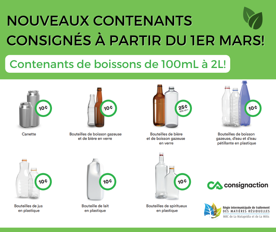 Les brasseurs du Québec ont instauré il y a environ 200 ans la première consigne de la province afin de favoriser la réutilisation des bouteilles de verre, puisque celles-ci peuvent être réutilisées jusqu'à 15 fois ! Les canettes d'aluminium, quant à elle, peuvent être recyclées à l'infini !